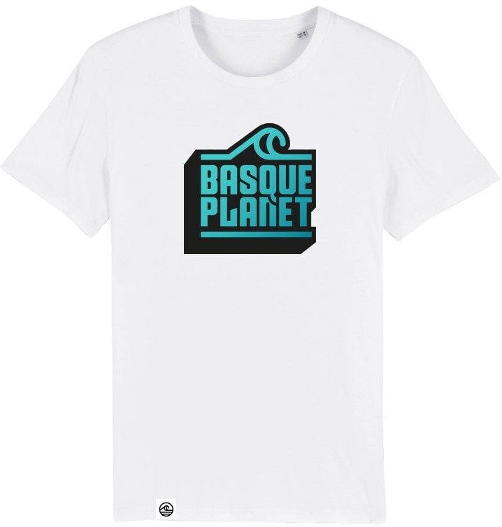 Camiseta blanca con logo Basque Planet a 2 tintas estampado.